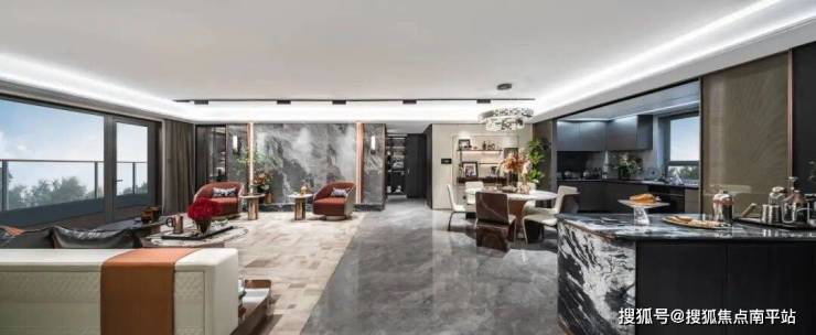 建面约 80㎡的餐客区域,采用无界格局设计,LDKB 奢阔通厅搭配洄游动线,让空间更加流畅自然。无论是与亲朋好友聚会宴饮,还是独自享受观景烹饪的乐趣,皆可在此轻松实现,赋予生活更多的美好与惬意。
