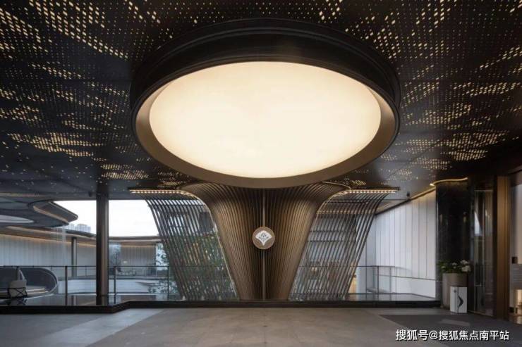 入口空间的表达,将“凤凰木——自然生长”的理念具象化。入口正对的造型仿佛一朵盛开的凤凰花,而顶部的穿孔板则结合凤凰羽毛的形态,以放射状展开,生动地呈现了凤凰木的自然之美。