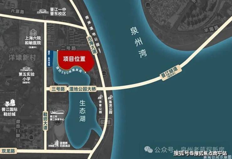 就拿建发·缙湖来说,在现有已出让地块中,位置是最好的。周边望眼过去皆是代表泉州的国际名片: 蓝蓝泉州湾、晋江第二体育中心、国际鞋纺城、360亩生态湖、上海六院和敏医院(在建中)等重磅级地标拱卫,让其成为资源交互的焦点。