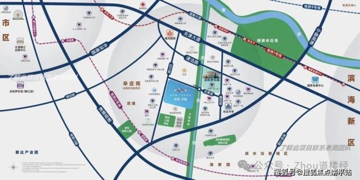 3️⃣全维成熟配套:津南永旺、深特广场(规划)、新濠广场、兆恒广场、HELLO CITY、月星家居广场等环伺周边;开窗即享一线河景;四横两纵路网,串联交通要脉,畅达全城;南邻两大公园绿地(规划),东近河岸绿道,直线距离约2.5KM享海教园湿地公园;多家三甲医院近距离护航,距天津海河医院仅2.0KM;周边多中小学,教育无忧。