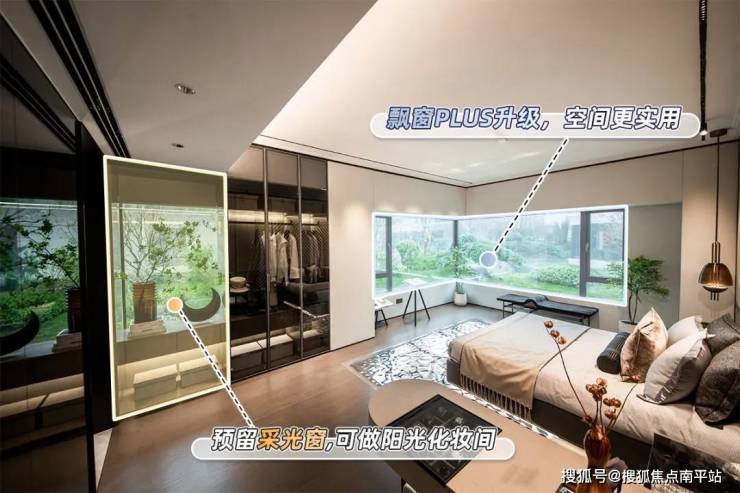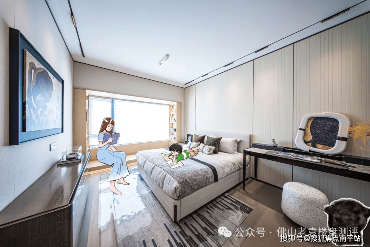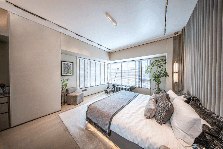 在保利和著这个卧室里,就连一个榻榻米都极具匠心,靠窗的区域由于没有传统飘窗阻碍,是直接落地的,打开柜门就可以放换季物品,床边的位置做了抽屉,拿取日常用品不用掀开床垫。