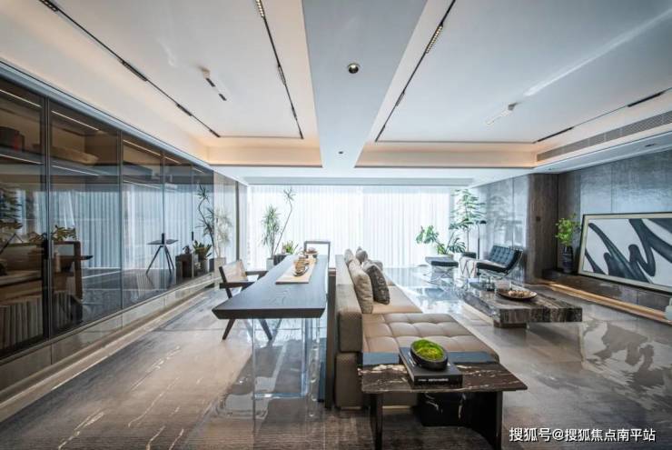 也可以打造L型玻璃推拉门,打开即可与客厅一起,连成洄游型大厅;闭合又能回归独立书房、功能室,乃至未来的二孩房。