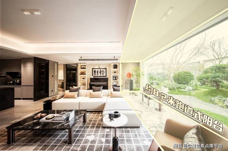 由于客厅本身尺度足够阔绰,加上连通超6.4米南向阳台,如此设计,拥有收纳功能的同时,空间的尺度感也没有被影响,反而倍感奢阔。