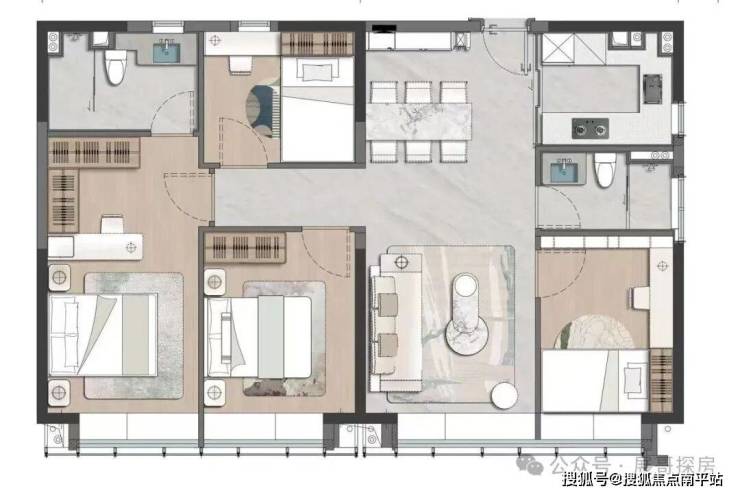 •卧室尺度逆天:主套卧居然 30 多平!这可是市面 180-200 平新盘才有的配置;儿童房 15-16 平,孩子能玩能学,空间足足的。