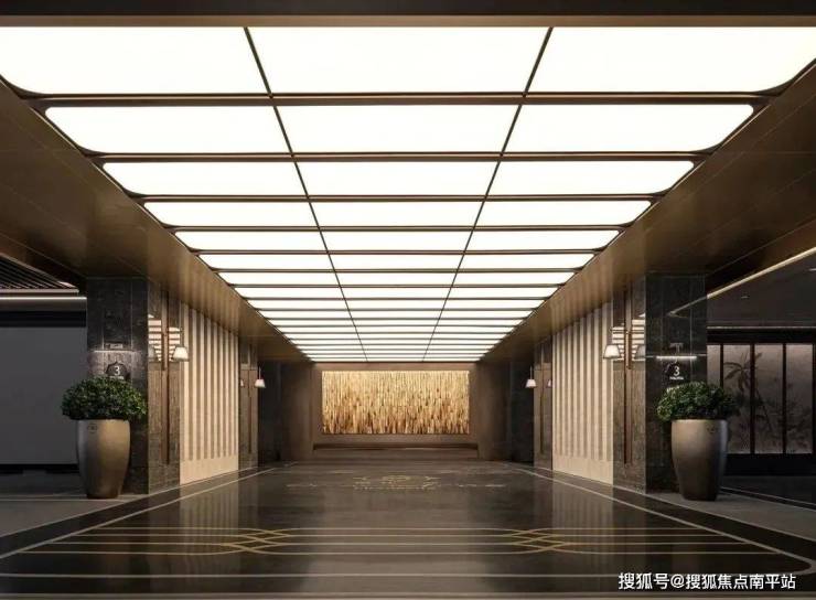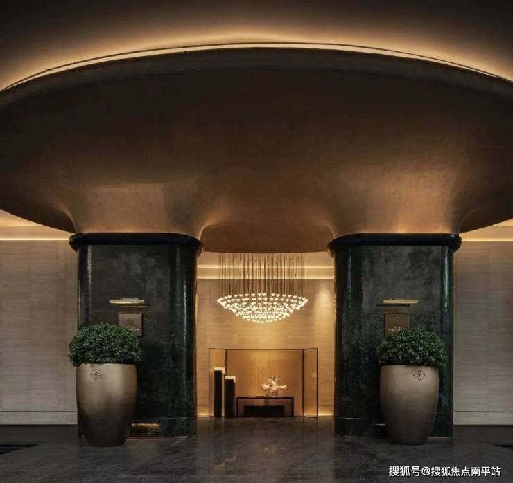 项目入口处打造酒店式落客流线,入口处约8米悬挑雨篷提升了门庭前场的气势,展现了高门大户的尊贵气度。