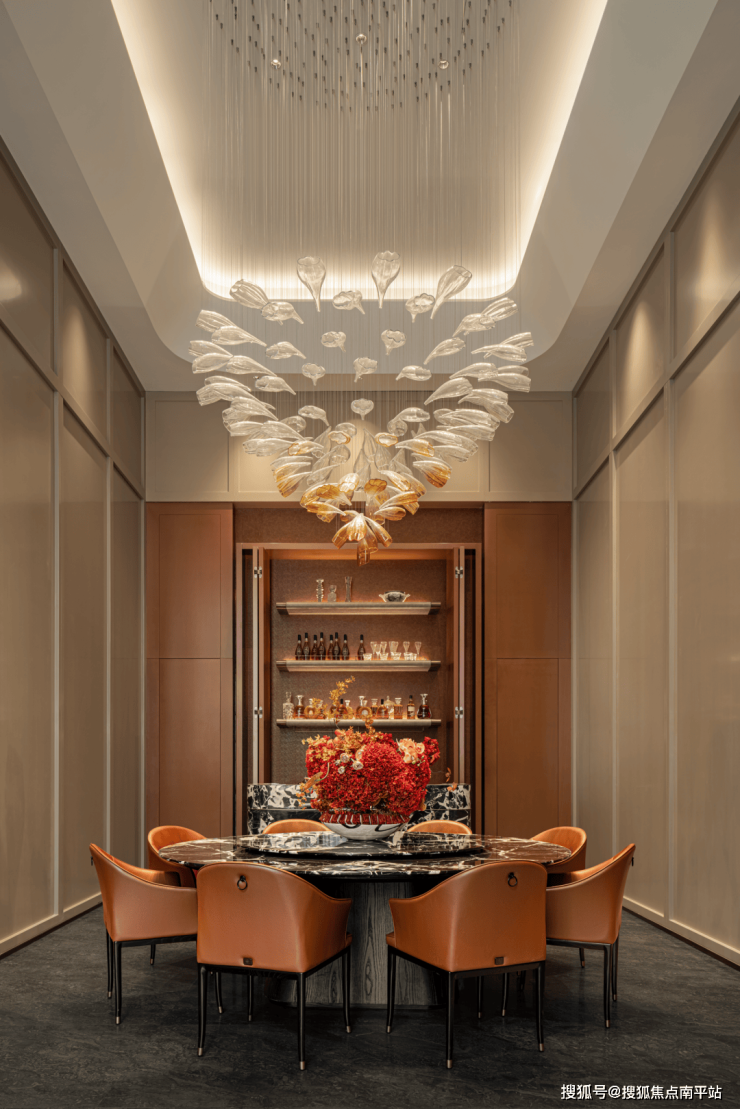 以“宝格丽宝盒”为灵感,构筑了奢华大气的归家仪式感。约九米高的入户大堂,构建了一个巨大的古罗马万神庙式艺术穹顶,行走期间犹如徜徉在宇宙之中,预示着一段极具生命力的艺术探索之旅。