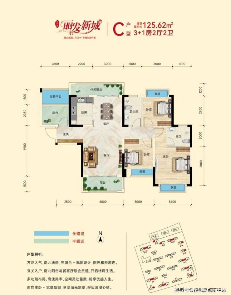 加赠送得房率高达93%,106㎡做到3+1户型设计,全屋四开间朝南,南向6.5米转角阳台设计,尽揽园林风光。