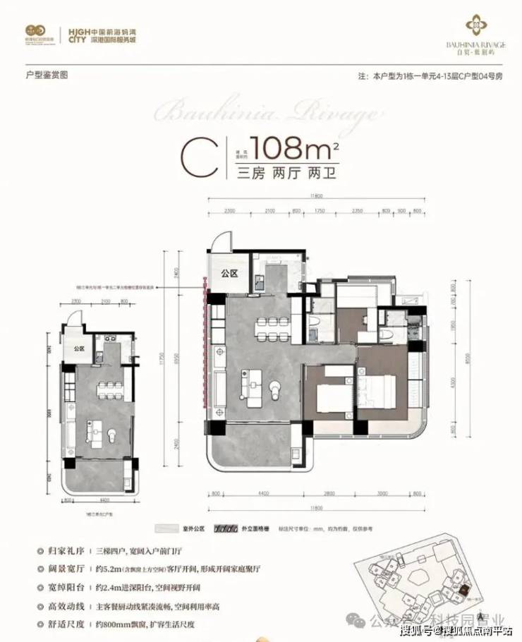结合前海片区的定位和市场需求,预计将以改善型新规大户型为主,瞄准对前海发展潜力看好的改善型客群和资产配置者。4月9日实体样板房开放。