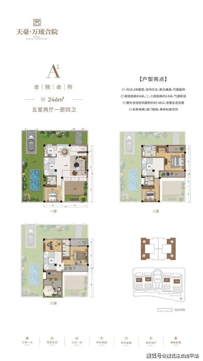 产品户型:建面约230-246㎡花园式合院,建面约276㎡空中平墅