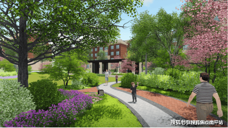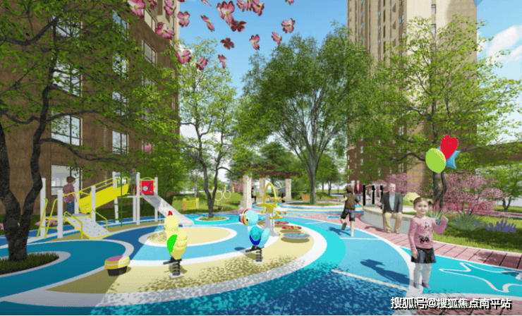 “园林景观中特设多功能全龄活动场,可承载3—12岁儿童及中老年活动,有地面图案引导孩童跳跃、奔跑,并为长者设置慢走环道、划分踢毽场地等。”如此其乐融融的场景,让每位家人都倍感舒适。