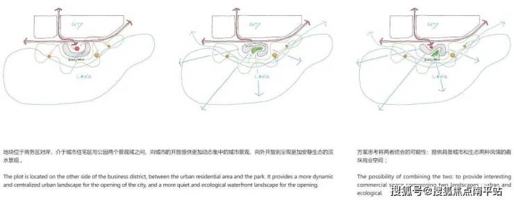基地北侧是当代风格的住宅区,南侧是开放的湿地公园。基地所处环境开阔,用地形状也不规则,但幸运的是,规划允许较高的建筑密度。我们希望利用这一点,营造更具包裹感和舒适度的城市空间,以抵消场地的空旷感。然而,一个核心问题随之而来:面对南北两个迥异的“景观域”,建筑应采用什么样的姿态?