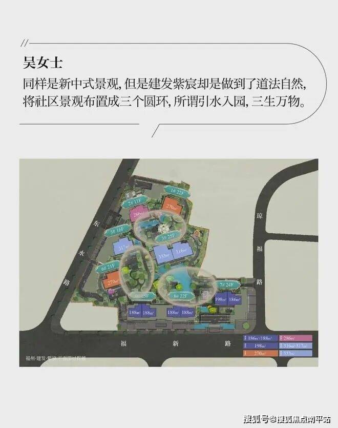 项目目前主要营销”一层一户,温泉入府福州风雅宋韵首作”。规划总建6.17万㎡,限高80米,打造了6栋高层+1栋小高层+1栋洋房,合计252套住宅;整体围合布局,社区全部楼栋连接风雨连廊。