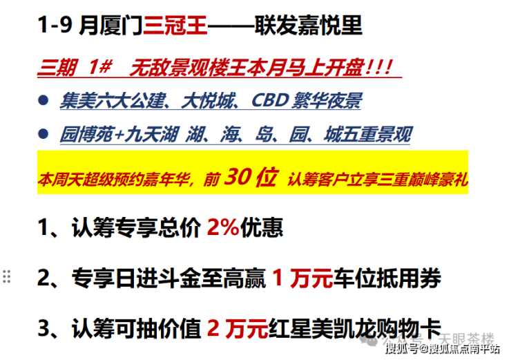 再次提醒, 联发嘉悦里三期本周天(明天)超级预约嘉年华,前30位认筹客户立享三重巅峰豪礼,套数有限。