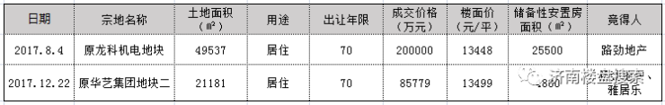 2017年8月4日,路劲地产以200000万元的总价摘得长岭山片区原龙科机电地块,竞价79轮,达到最高限价,溢价率约133.88%,楼面价为13448元/平+储备性安置房面积25500平。这个地块即璟园的璟悦府。