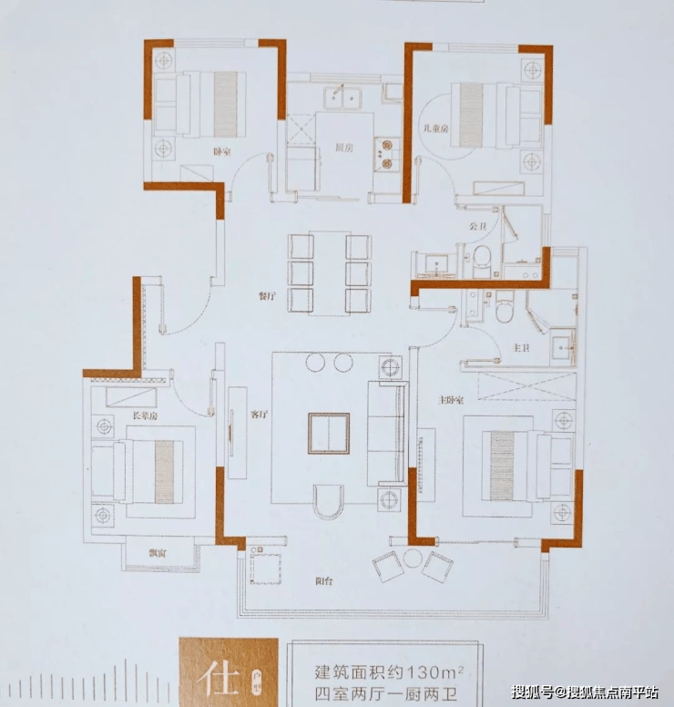 4#楼为18层小高层住宅,两梯四户,户型面积为134平、144平。