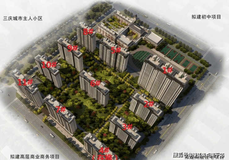 璟悦府占地面积49573平,总建设面积210036.91平,地上容积率3.0,总户数1171户,共规划11栋楼,除东北角的1#楼为28层高层住宅外,其他的均为17层和18层小高层住宅。
