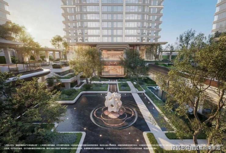 以即将开放的下沉庭院为例,大师李宝章执笔,打造大规模水景+景观雕塑+景观树阵,流水叠瀑自风雨连廊飞瀑而下,形成立体景观,意境十足。