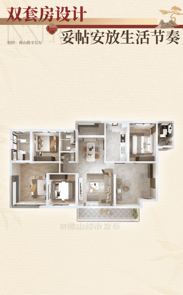 这正是全佛山独一无二的杀手锏——在约139平面积段,罕见实现“双主套”,分列公区两侧,均配备独立卫生间。