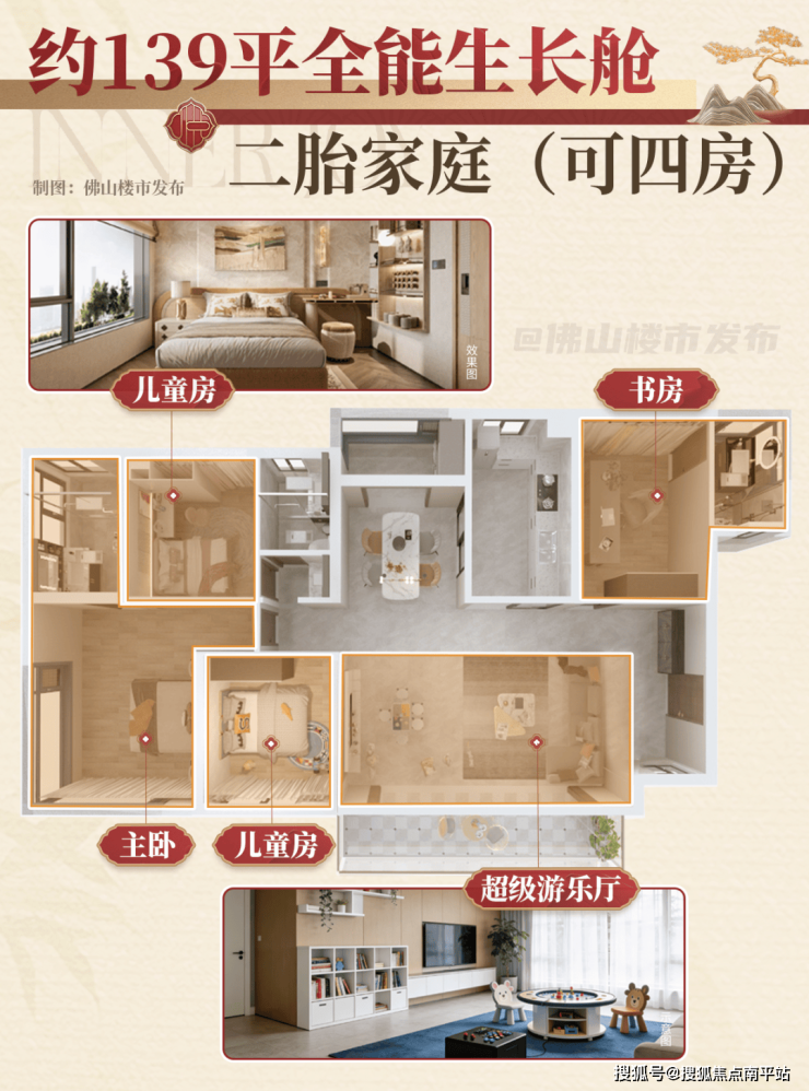 项目约139平户型,对这一痛点进行精准回应:它不仅是佛山唯一约139平五房双主套的超新规,还能实现“可3、可4、可5房”的灵动变化。