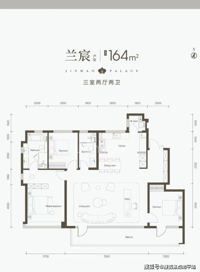 C户型 164㎡ 680-720万元 3室2厅2卫 阔绰尺度,舒适度极佳