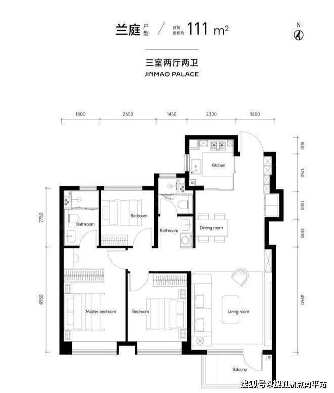 A户型 111㎡ 360-420万元 3室2厅2卫 布局紧凑实用,适合首改家庭