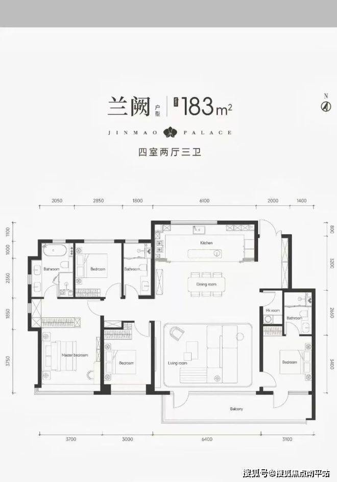 D户型 183㎡ 775-830万元 4室2厅3卫 尊享改善之选,多一室更从容