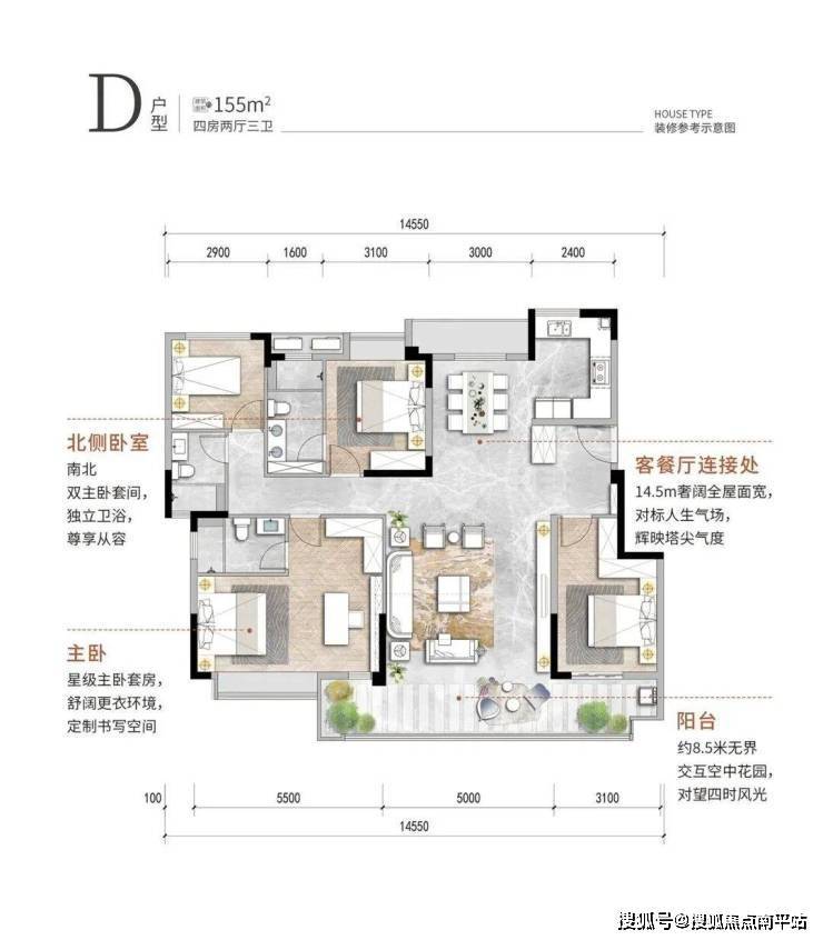 建面约155㎡的尊享户型