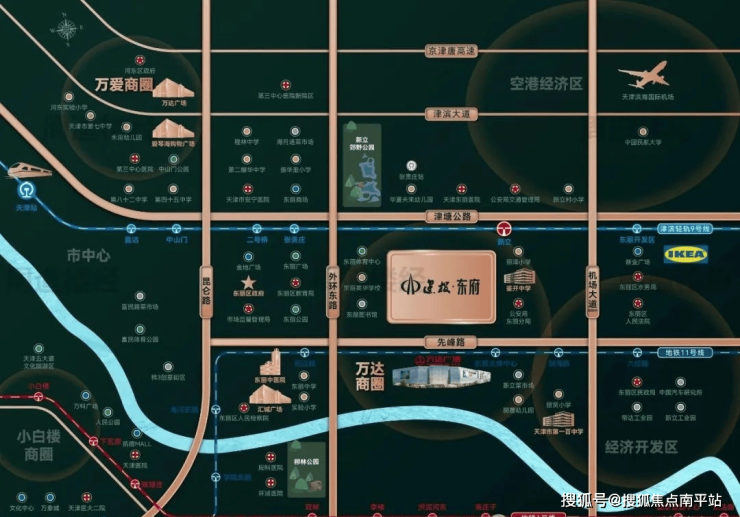直线距离约500m地铁11号线(东丽文化中心站)双轨环伺,轻松连通津滨双城