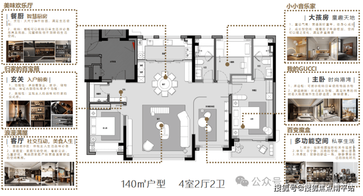 143㎡四房:主卧自带挑空平台,秒变空中花园!餐厨客一体化设计,160㎡的尺度感只卖143㎡的价格