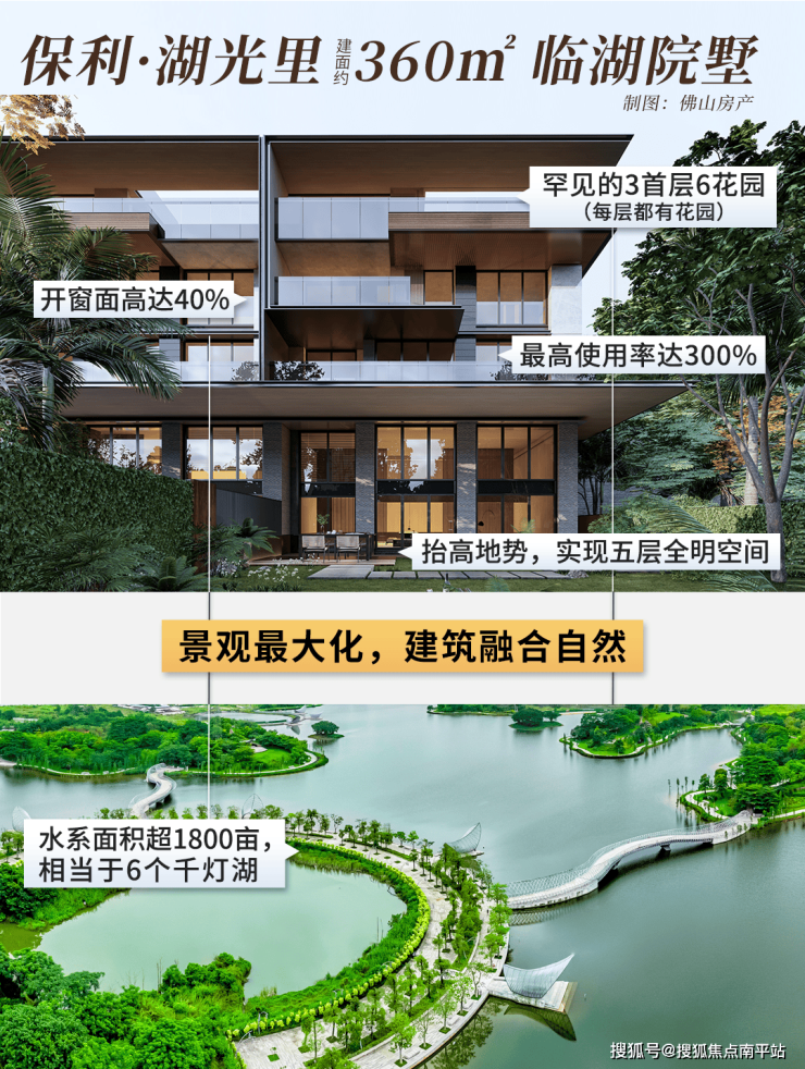 从整体规划来看,项目有着独特的断层与施工设计,使得墅区容积率仅为0.8,成为近10年来佛山土地市场中容积率最低的宅地。低密度的设计意味着更大的空间、更多的绿地和更私密的居住环境。在这里,每一栋建筑都仿佛是自然中的一处点缀,与湖光山色相得益彰。