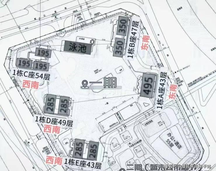项目分为一和二期:一期为住宅和底商,二期主要是办公、酒店和商业等。