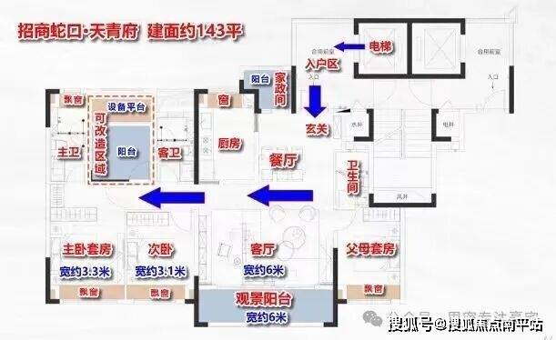 【灵动空间】:3+1房功能布局,高得房。南向三卧室通透舒适,北向灵动空间可改造为书房或卧室,功能自由切换,满足更多生活需求。
