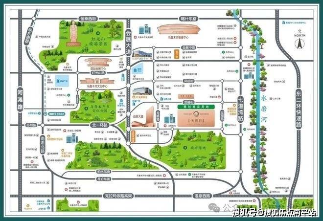 作为乌鲁木齐重点擘画的国际城市封面板块,片区集聚了益民大厦政务中心、六馆一心文化中心、国际会展中心、奥体中心四大核心地标,共同构筑起兼具城市功能与形象的战略高地。