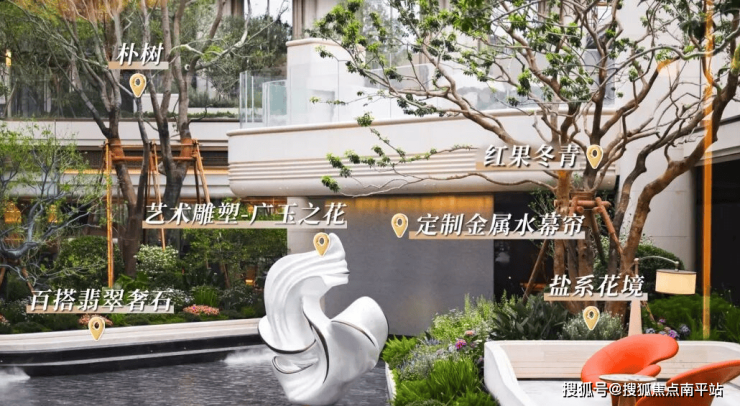 步入其中, 32米长恢弘门楼威仪尽显,搭配 16米叠水景观潺潺流淌,水声潺潺,给人带来一场沉浸式的“听觉疗愈”。