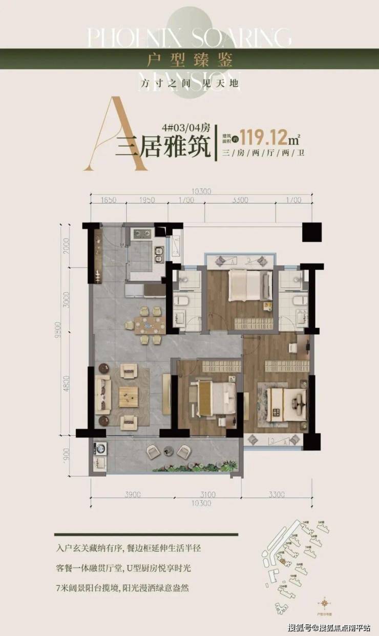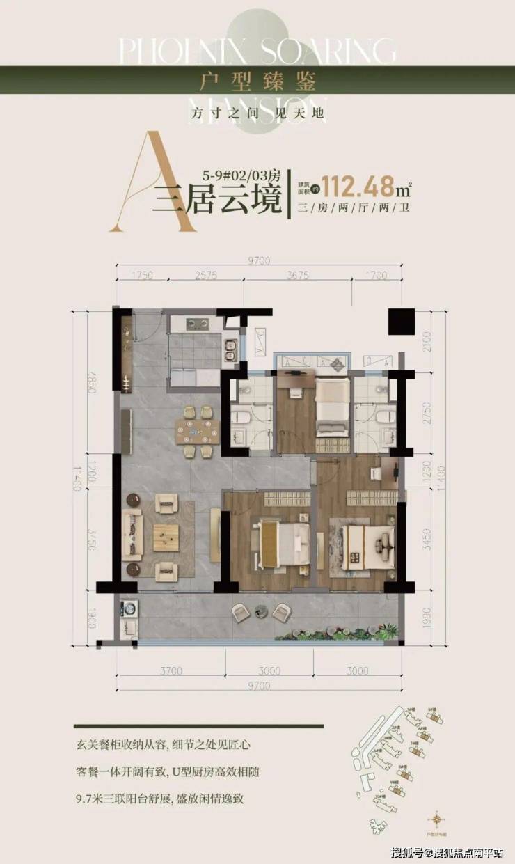 112㎡全能三房:高效利用空间,功能齐全。约9.7米观景阳台,U型厨房与明卫配置,在有限面积内实现舒适生活。