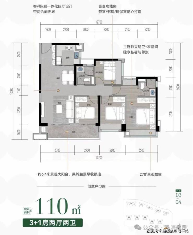 110平全能四房与124m王牌四房,超越标准的进阶之作,空间功能 步到位。多开间朝南,LDK客餐厨一体化,高拓展、超高实用率,约6.4米奢尺阳台,目之所及皆是赏心悦日110㎡全能四房,生活一步到位】