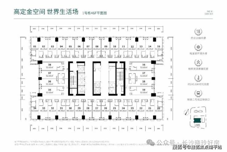 约245.8米高的摩天大楼,梅溪湖北岸最高标志性建筑。楼体采用全玻璃幕墙结构,铸就奢阔景观视野。结合精奢平层、百变LOFT、顶级大平层等多业态发展,引领区域经济红利。