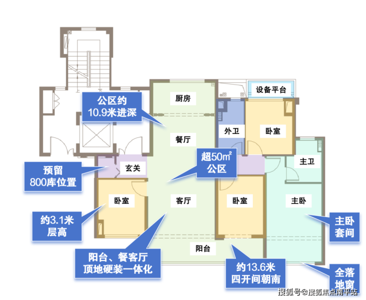 建面约114㎡户型:媲美市面上130㎡户型尺度