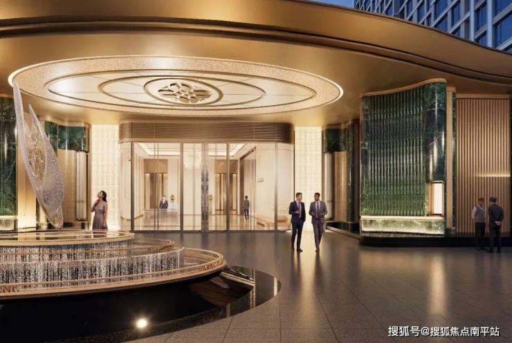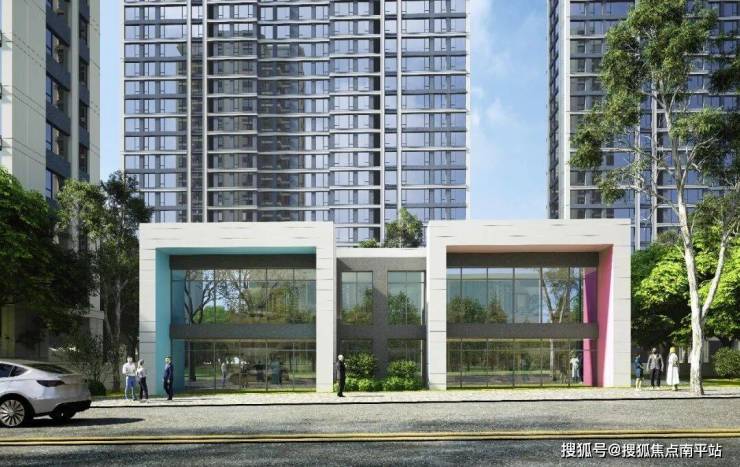 仔细看楼栋单体,可以发现在线条的处理上,三七分的竖向主线条从底部一路向上,在塔冠的部分分别向两边收口形成弯折造型。怎么说呢,略撞脸,但问题不大。