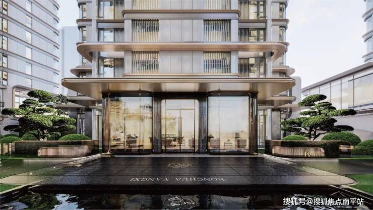 承袭王府鼎级规制,同频国际当代审美;大面积中空LOW-E玻璃幕墙,辅以金属铝板勾勒,环幕弧面公建化立面,屹立中心的地标封面,献给世界的传承资产。