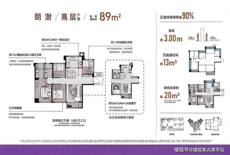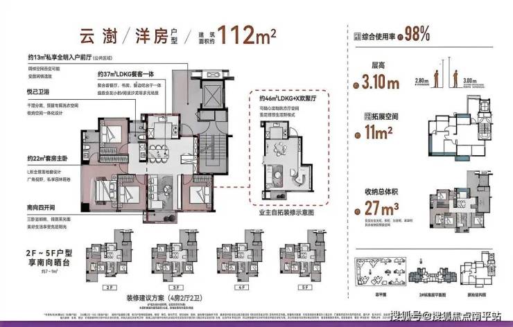 •主力户型:建面约64-112㎡瞰海高层/低密洋房,涵盖两房、三房、四房全户型;得房率达85%-98%(高层85%-90%、洋房97%-98%),89㎡做到边套四房,79㎡实现三房两卫,空间利用率拉满 ;