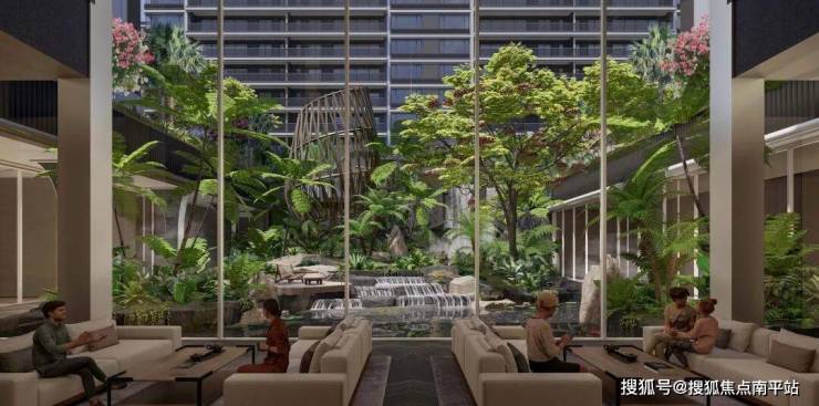 对标新加坡香格里拉“花园翼”,打造谧境花园。大叶木棉、旅人蕉等热带植被丛生,台地花园、叠水水景、林下花园等多元景观,以五感为引,匠造 “海岛仙山,花园秘境”,让雨林意境融入生活。
