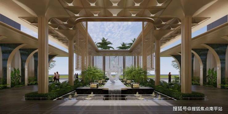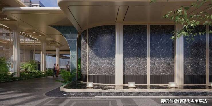 一重酒店式落客:数百万级投入,80米落客前场尽显气度;二重入口前厅:2.6 米主题雕塑与水景相映;三重下沉水院:通透玻璃幕墙围合精琢庭院;四重中央园林:四季有景,空间流畅;五重精装大堂:酒店式入户,超阔挑高,赋予归家尊崇感。