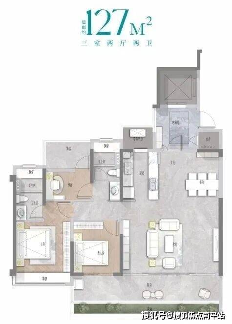 建面约127㎡舒适三房:空间布局合理,兼顾度假与生活