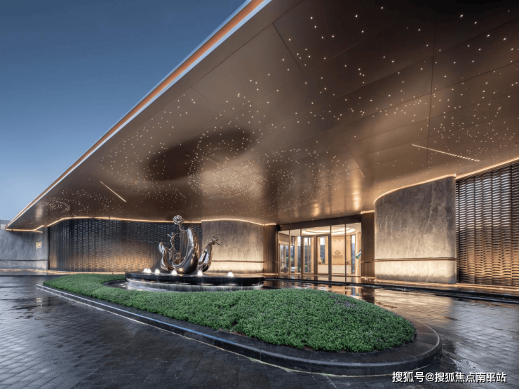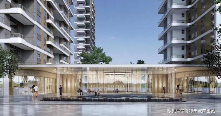 在建筑形态上,项目创造性融入了波光湖面的设计元素,打造出独特的鎏金湖波曲线立面。这种错落有致的布局配合流畅的线条设计和超尺度玻璃巨幕,不仅赋予建筑极高的艺术价值,也为住户提供了无与伦比的景观视野。