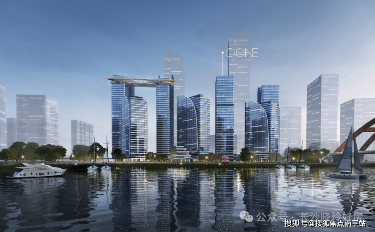 首创7栋帆船建筑造型,以“钻石之帆”的立面闪耀江岸;于约150米高空,以极具国际视野与审美的“天使之眼”云端会客厅,点睛长沙。