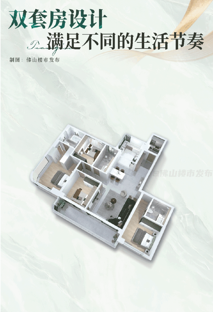 以往要170㎡以上才有的四房三卫双套间,保利灯湖天珺的建面约139㎡产品就能做到。
