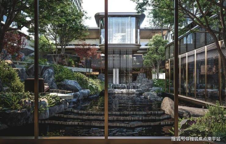 核心在于,依托架空层形成的地势高差,营造立体山水园林景观,构建出可观、可游、可望的多维互动场景,彻底打破了传统住宅的平面线性叙事逻辑。