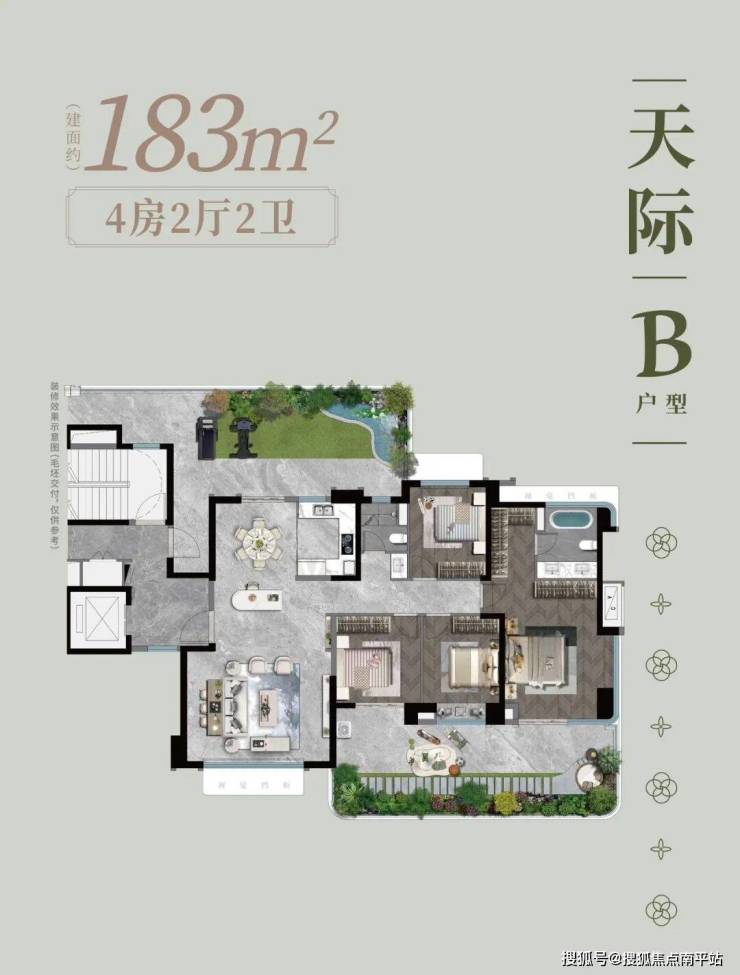 2.四代宅优等生:带南北双庭院+6.3米挑高露台+3.15层高+超120%得房率