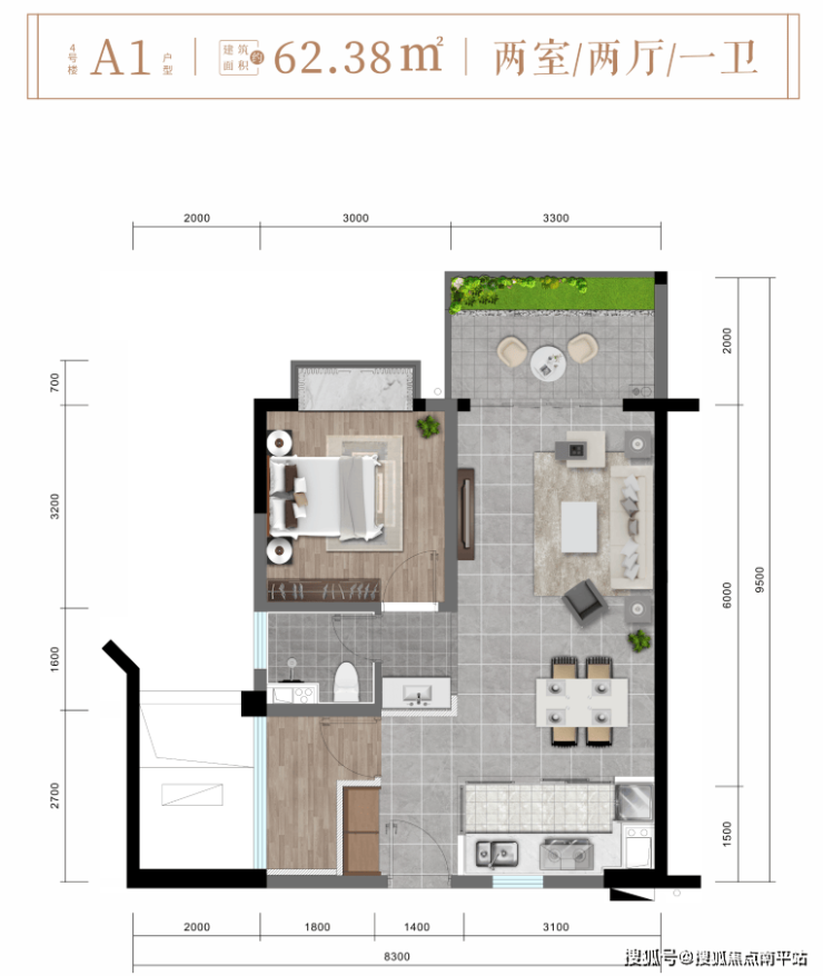 ✨ 6#楼A3户型约64㎡精致两房两厅一卫